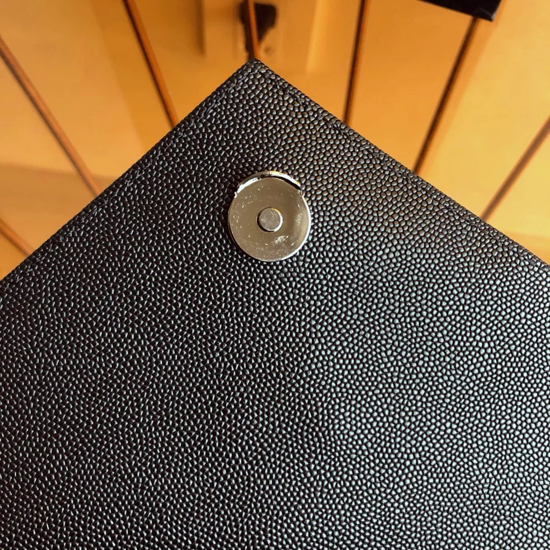 SAINT LAURENT MONOGRAM ENVELOPE BAG MADE WITH METAL-FREE TANNED LEATHER, WITH A FRONT FLAP AND MAGNETIC SNAP CLOSURE, DECORATED WITH METAL YSL INITIALS AND A MIX OF VERTICAL, CHEVRON AND DIAMOND QUILTED OVERSTITCHING, FEATURING A LEATHER AND CHAIN STRAP THAT CAN BE WORN TWO WAYS.